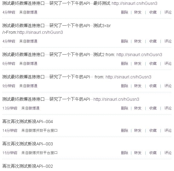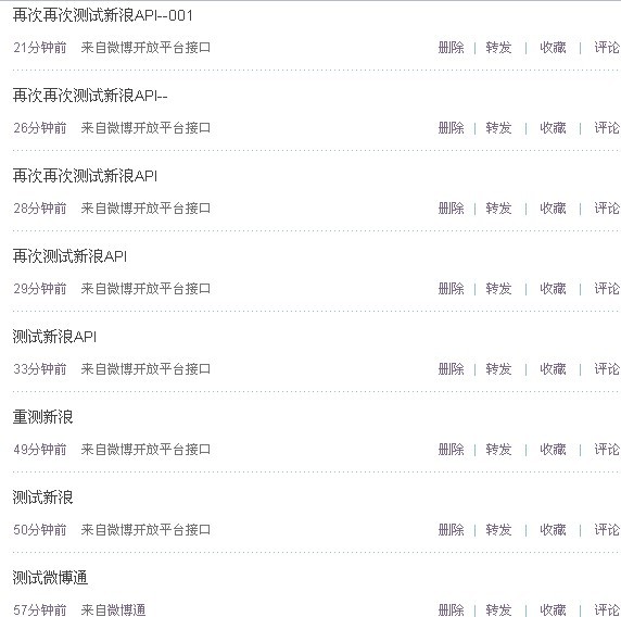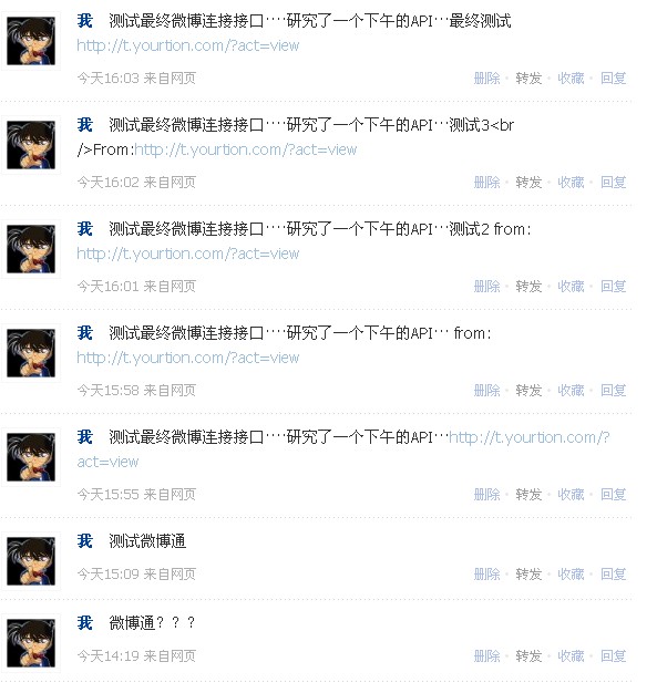 测试的时候发了很多测试微博在新浪,嗮一下-http://t.sina.com.cn/yourtion