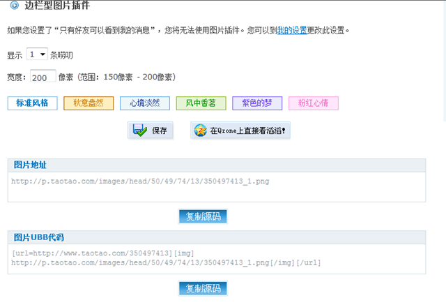 但是图片的话限制相对比较多,宽度是150到200.签名型图片则大小固定,虽然可以通过代码限定大小,但是效果可能不好。大家可以看着用。